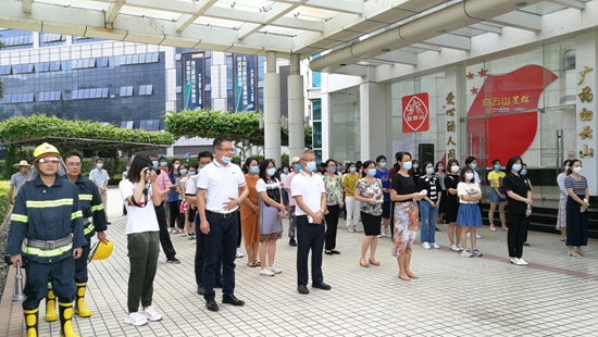 6月23日下午,星群公司在本部舉行了由160余名員工參與的火災(zāi)事故疏散救援演練。本次演練模擬著火點(diǎn)在辦公大樓檔案室因空調(diào)電線短路發(fā)生火情。海珠區(qū)應(yīng)急管理局監(jiān)管科唐衛(wèi)兵科長(zhǎng)前來參觀指導(dǎo)。