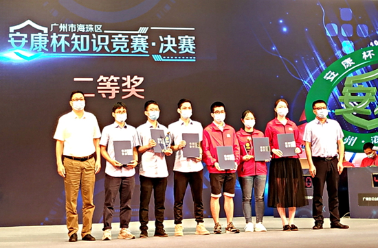 8月27日,廣州市海珠區(qū)“安康杯”知識競賽總決賽在廣州市海珠區(qū)政府會議中心禮堂舉行?;糁境蓵泿ьI(lǐng)星群公司的5位參賽隊員代表參加了決賽。星群的代表選手,在必答和搶答兩個環(huán)節(jié)的激烈競賽中,充分展現(xiàn)了選手對于安全生產(chǎn)業(yè)務(wù)知識和職業(yè)病防治知識的牢固掌握和靈活運用,最終,星群公司代表隊獲得二等獎,為企業(yè)爭取了榮譽。