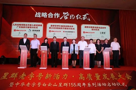 活動最后,廣州白云山醫(yī)藥集團(tuán)股份有限公司副總經(jīng)理鄭浩珊對此次大會進(jìn)行了發(fā)言。她表示:巨星品種夏桑菊系列量價齊升,藥品主業(yè)根基更加扎實;大健康業(yè)務(wù)堅持“三高三名”戰(zhàn)略轉(zhuǎn)型升級;星群公司在黨建、科技、市場、文化等多維度取得了豐碩成果,展現(xiàn)了星群老字號在新時代煥發(fā)的新活力。鄭總還提出了三點意見和建議。一是要扎實開展主題教育,推動黨建引領(lǐng)再加強;二是要落實做好“四拼一防”,推動企業(yè)發(fā)展再增效;三是要深耕品牌文化建設(shè),推動老字號新活力再加力。
