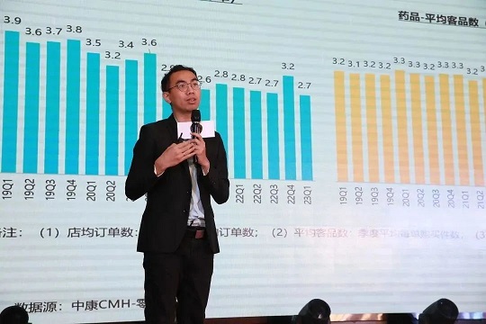 中康科技智慧決策云中心產(chǎn)品總監(jiān)嚴(yán)礪寒在大會上作星群夏桑菊市場大環(huán)境數(shù)據(jù)分析