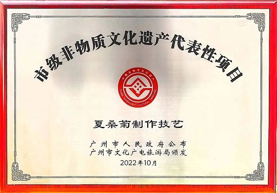 “廣州市非遺項目:夏桑菊制作技藝”牌匾