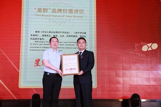在此次大會上,星群公司也有幸請到了北京名牌資產(chǎn)評估有限公司首席評估師、高級合伙人魏建國為星群公司進(jìn)行了價值評估,并為公司頒發(fā)評估證書。30.21億元——這是一代又一代星群人接力拼搏的結(jié)果,更是消費者認(rèn)同的體現(xiàn)。