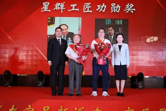 為星群工匠功勛獎獲獎?wù)撸涸S招懂(左二)頒獎