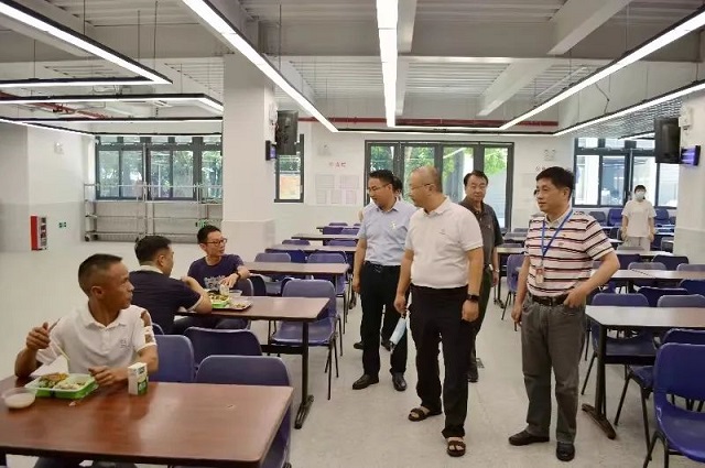 會后,黃山書記一行來到正圍蔽施工的海珠灣隧道星群征地段了解對企業(yè)的影響,并實(shí)地查看了新投入使用的員工食堂就餐環(huán)境及公寓設(shè)施條件。