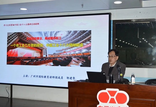 最后,為深入傳達(dá)落實(shí)中國(guó)工會(huì)十八大精神,充分發(fā)揮職工民主管理作用,公司工會(huì)特別邀請(qǐng)了高級(jí)政工師(副教授)、廣州市第六七屆國(guó)防教育講師團(tuán)成員鄒建華老師向職工代表宣講中國(guó)工會(huì)十八大精神。鄒老師以一個(gè)老工會(huì)工作者的經(jīng)驗(yàn),由淺入深地為職工代表們解讀中國(guó)工會(huì)第十八次全國(guó)代表大會(huì)等精神,從多維度為大家講授當(dāng)前工會(huì)工作的新理論、新實(shí)踐,增強(qiáng)職工代表的履職能力,動(dòng)員職工積極建功新時(shí)代,全力助力星群公司高質(zhì)發(fā)展。