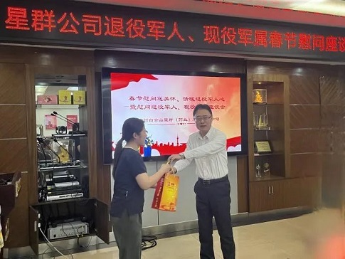 隨后,大家紛紛表示,今后將不忘初心,永葆軍人本色,以良好的道德情操、昂揚(yáng)的精神風(fēng)貌、飽滿的工作熱情干好本職工作,為公司高質(zhì)量發(fā)展做出新的貢獻(xiàn)。座談會結(jié)束前星群公黨委書記、董事長胡文新,黨委副書記、工會副主席鄺敏儀分別為退役軍人、現(xiàn)役軍屬送上春節(jié)慰問品。