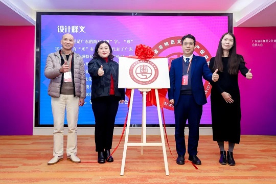大會(huì)啟用了促進(jìn)會(huì)的會(huì)標(biāo)。會(huì)標(biāo)主視覺(jué)為廣東的簡(jiǎn)稱(chēng)“粵”字。“粵”字中有“米”有“水”,代表了廣東依山傍海的地域特征;“粵”字外以一圓形框架包圍,體現(xiàn)了以滿洲窗格為特色的嶺南建筑文化,也象征廣東非遺引領(lǐng)灣區(qū),打開(kāi)傳統(tǒng)文化之窗。整體采用傳統(tǒng)與現(xiàn)代相結(jié)合的風(fēng)格,沿用中國(guó)非遺LOGO的色彩,寓意在中國(guó)非遺的“底色”上,譜寫(xiě)廣東非遺的特色篇章。