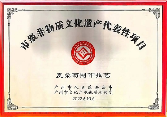 2022年,白云山星群“夏桑菊制作技藝”作為傳統(tǒng)醫(yī)藥類項目,入選“廣州市第八批市級非遺代表性項目”。