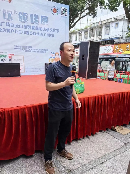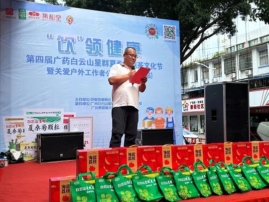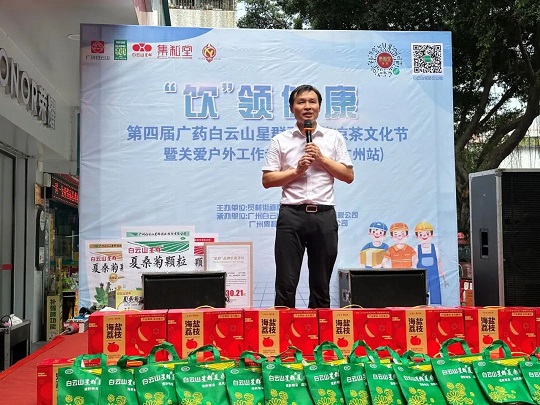 白云山星群藥業(yè)總經(jīng)理賀慶在臺(tái)上致辭:“涼茶作為中國(guó)傳統(tǒng)文化的一部分,在炎炎夏日,一杯涼茶不僅能消暑解渴,更能帶來(lái)心靈的慰藉。我們白云山星群藥業(yè)將通過(guò)舉辦涼茶文化節(jié)的形式,向廣大市民普及涼茶知識(shí),推廣健康生活方式,同時(shí)也讓戶外工作者們感受到社會(huì)的溫暖與關(guān)懷。接下來(lái)我們白云山星群將繼續(xù)舉辦一系列的公益活動(dòng),踐行廣藥集團(tuán)“廣藥白云山,愛心滿人間”的社會(huì)責(zé)任,給戶外工作者在這個(gè)炎炎夏日送上關(guān)愛和清涼。