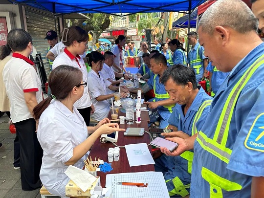 公益捐贈(zèng)儀式結(jié)束后,為進(jìn)一步深化對(duì)環(huán)衛(wèi)工人的關(guān)懷與支持,星群與集和堂大藥房連鎖積極行動(dòng),特別為環(huán)衛(wèi)工人們提供了免費(fèi)的五項(xiàng)健康檢測(cè)服務(wù)。確保他們?cè)谛燎诠ぷ鞯耐瑫r(shí),及時(shí)關(guān)注自身身體健康,能夠享受到基本的健康保障。