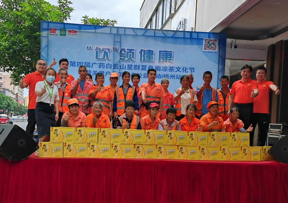 為了進一步傳承和發(fā)展涼茶文化,展現(xiàn)星群涼茶文化的深厚底蘊,同時關注戶外工作者的健康需求,讓傳統(tǒng)的養(yǎng)生涼茶為人民健康服務,自2021年起,白云山星群便與各大連鎖藥店開展百城千店萬民計劃,共同攜手在兩廣地區(qū)舉辦多場夏桑菊涼茶文化節(jié)公益活動。今年6月,第四屆廣藥星群夏桑菊涼茶文化節(jié)在星群公司高質量大會上正式啟動,主題為“飲”領健康。