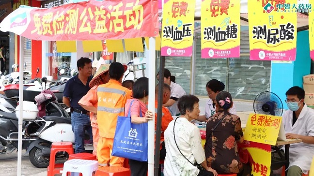 公益捐贈(zèng)活動(dòng)結(jié)束后,為更好落實(shí)對(duì)環(huán)衛(wèi)工人的關(guān)愛,星群和中智為現(xiàn)場(chǎng)開展慢病檢測(cè)、夏桑菊試飲的服務(wù),并在晚上開展了文藝表演活動(dòng),為他們傳遞溫暖。