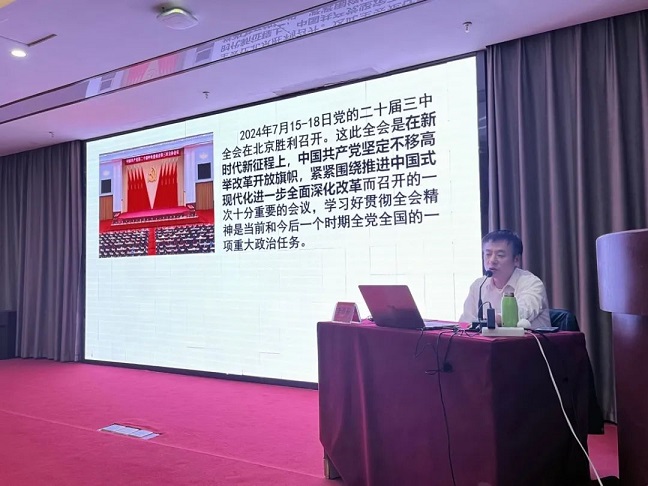 開班式結(jié)束后,中國井岡山干部學(xué)院李春耕教授圍繞進一步全面深化改革,推進中國式現(xiàn)代化的時代背景、精神實質(zhì)、系統(tǒng)部署等三個方面為全體學(xué)員講授專題黨課,對學(xué)習貫徹黨的二十屆三中全會精神作了深入解讀。
