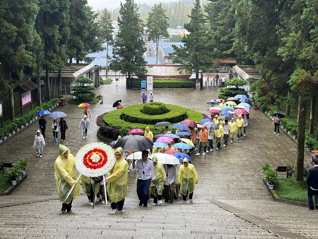 在井岡山的學(xué)習教育培訓(xùn)以現(xiàn)場教學(xué)為主。星群全體學(xué)員冒著綿綿細雨,首站來到“井岡山革命烈士陵園”敬獻花圈,吊唁革命先烈,瞻仰紀念堂、碑林、紀念碑、雕塑園,并重溫入黨誓詞。通過在莊重肅穆的環(huán)境下開展現(xiàn)場教學(xué),認真學(xué)習井岡英烈堅定理想信念、不屈不撓、勇于斗爭的大無畏精神。