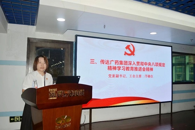 會(huì)議由鄺敏儀副書(shū)記領(lǐng)學(xué)《黨政機(jī)關(guān)厲行節(jié)約反對(duì)浪費(fèi)條例》的主要內(nèi)容,并傳達(dá)了廣藥集團(tuán)深入貫徹中央八項(xiàng)規(guī)定精神學(xué)習(xí)教育推進(jìn)會(huì)的會(huì)議精神。