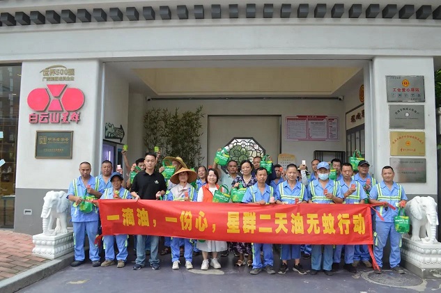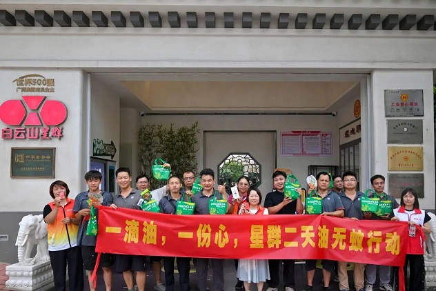 炎炎夏日,高溫與蚊蟲成為戶外工作者面臨的雙重考驗(yàn)。7 月 30 日,白云山星群工會(huì)、市場(chǎng)運(yùn)營(yíng)部與海珠區(qū)南洲街道辦攜手,在星群公司戶外勞動(dòng)者愛(ài)心驛站共同舉辦了兩場(chǎng) “一滴油一份心 星群二天油無(wú)蚊行動(dòng)” 公益活動(dòng)。此次活動(dòng)旨在為辛勤勞作的環(huán)衛(wèi)工人和快遞人員送上關(guān)懷,通過(guò)發(fā)放防蚊消暑禮包,為他們?cè)诳崾钪袔?lái)一絲清涼。