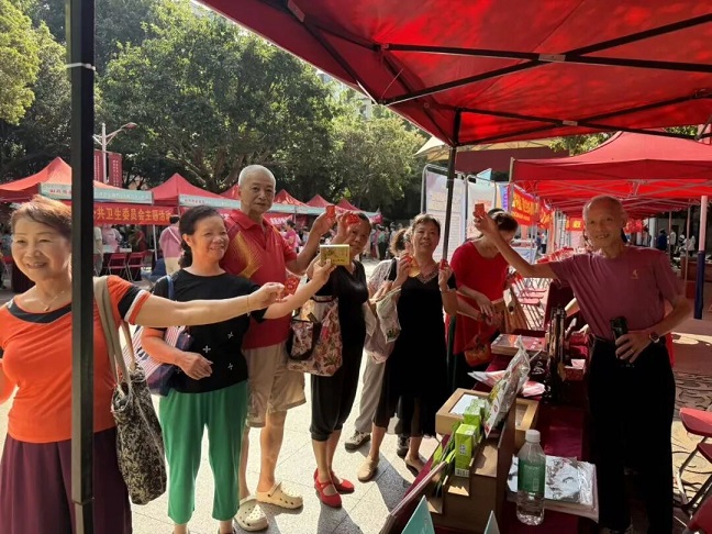 活動期間,工作人員細致講解“三非遺”產(chǎn)品的藥材配伍、功效等,讓居民深切感受中醫(yī)藥文化的魅力,并派發(fā)二天油(試用裝)、通竅救心油(試用裝)等健康好物,為居民們帶來滿滿健康關(guān)懷,將企業(yè)關(guān)懷化作實實在在的健康守護?;顒蝇F(xiàn)場氣氛熱烈,居民們興致勃勃,或?qū)WⅠ雎牴ぷ魅藛T的健康科普,或踴躍咨詢產(chǎn)品的購買方式、渠道。
