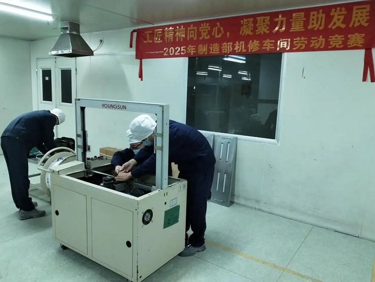 為大力弘揚(yáng)工匠精神,激發(fā)一線員工學(xué)技術(shù)、強(qiáng)本領(lǐng)的熱情,2025年12月26日,制造部機(jī)修車間成功舉辦了2025年度機(jī)修車間勞動競賽,這是機(jī)修車間劃歸制造部后首次組織的技能比武。競賽活動緊扣生產(chǎn)實(shí)際,精心設(shè)置了貼標(biāo)機(jī)快速檢修、捆扎機(jī)故障排除等實(shí)操項目,全面檢驗維修人員“維修+操作”復(fù)合型技能水平。